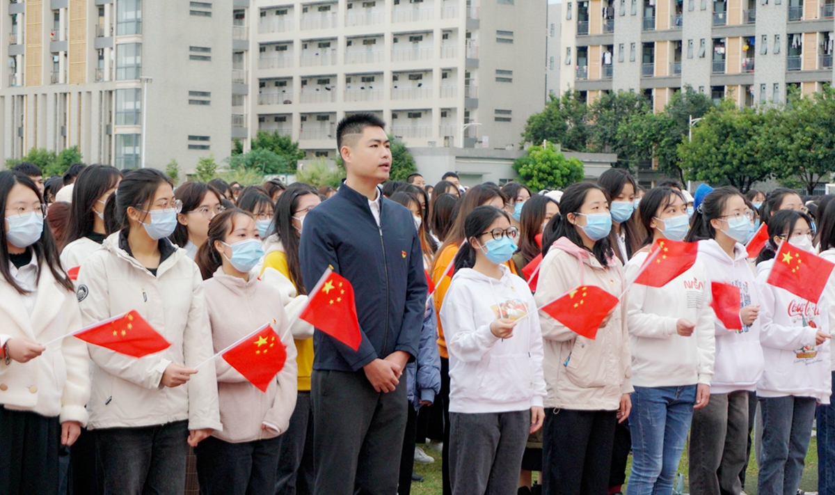 活动最后,全体师生手持五星红旗,共同唱响《没有共产党就没有新中国》,表达对中国共产党百年华诞的深情祝福。