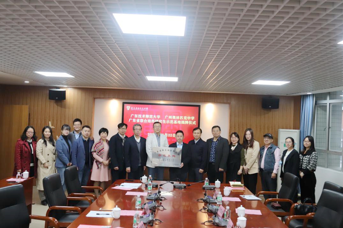 11月22日,买球官网与广州奥林匹克中学广东省联合培养研究生示范基地揭牌仪式在广州奥林匹克中学高中部举行。买球官网研究生院院长陈泳竹、职业教育教师学院院长邓文新、外国语学院书记杨伟光、外国语学院院长、基地主持人徐玲、研究生院副院长刘卫东、外国语学院副书记王琴琴、外国语学院副院长陈倩和研究生院培养办杨宇婷老师,广州奥林匹克中学书记廖晓红、广州奥林匹克中学校长汪明微、副校长周舟、张敏和广州奥林匹克中学英语科相关教师出席仪式。