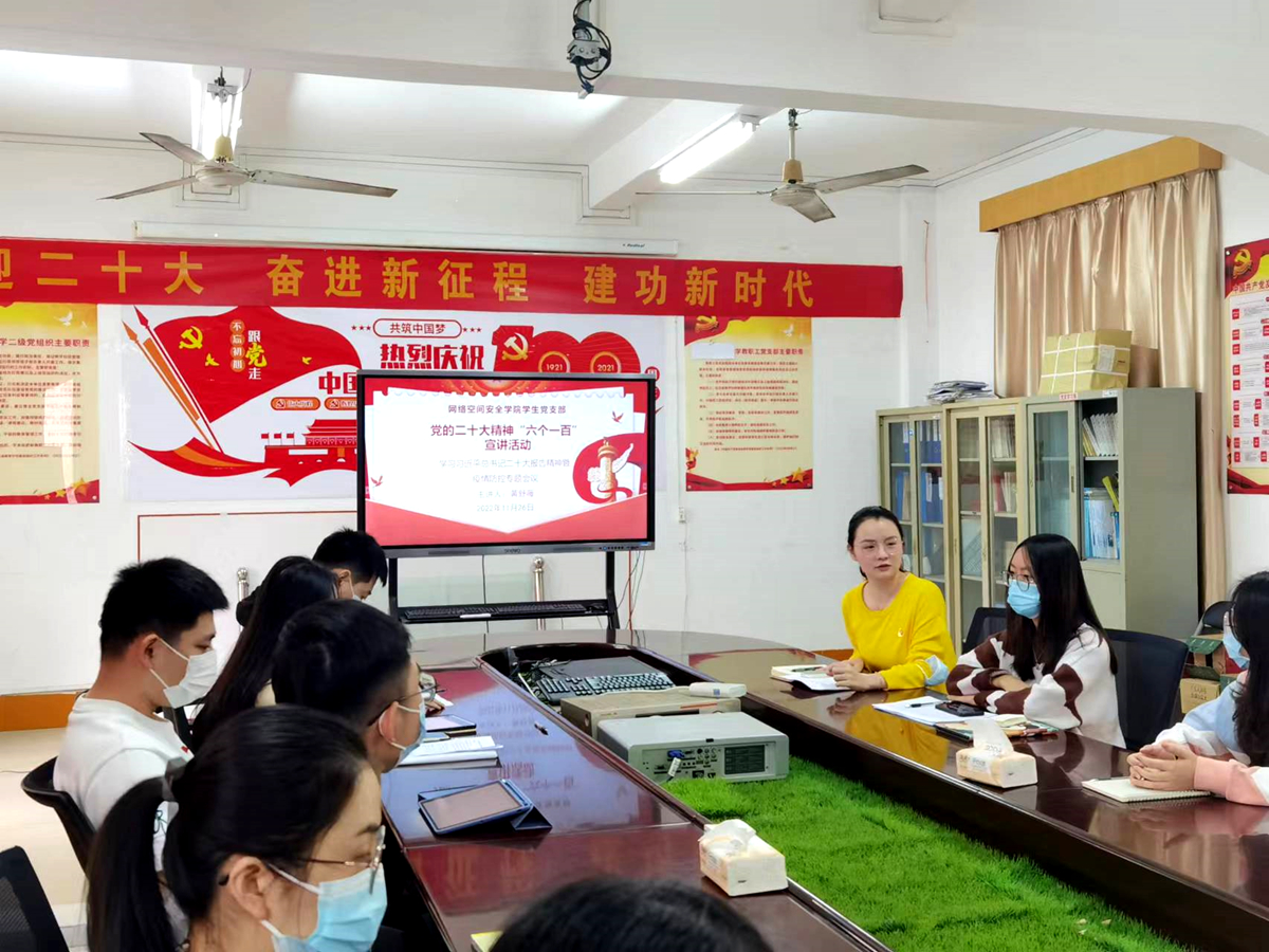为深入学习领悟党的二十大精神,贯彻落实《买球App软件手机在线下载党的二十大精神“六个一百”宣讲行动实施方案》,网络空间安全学院教工党支部、学生党支部分别于11月24日、11月26日面向全体师生党员开展了党的二十大精神宣讲活动。活动以线上线下相结合的方式进行,分别由支部书记主持并讲授了党课。