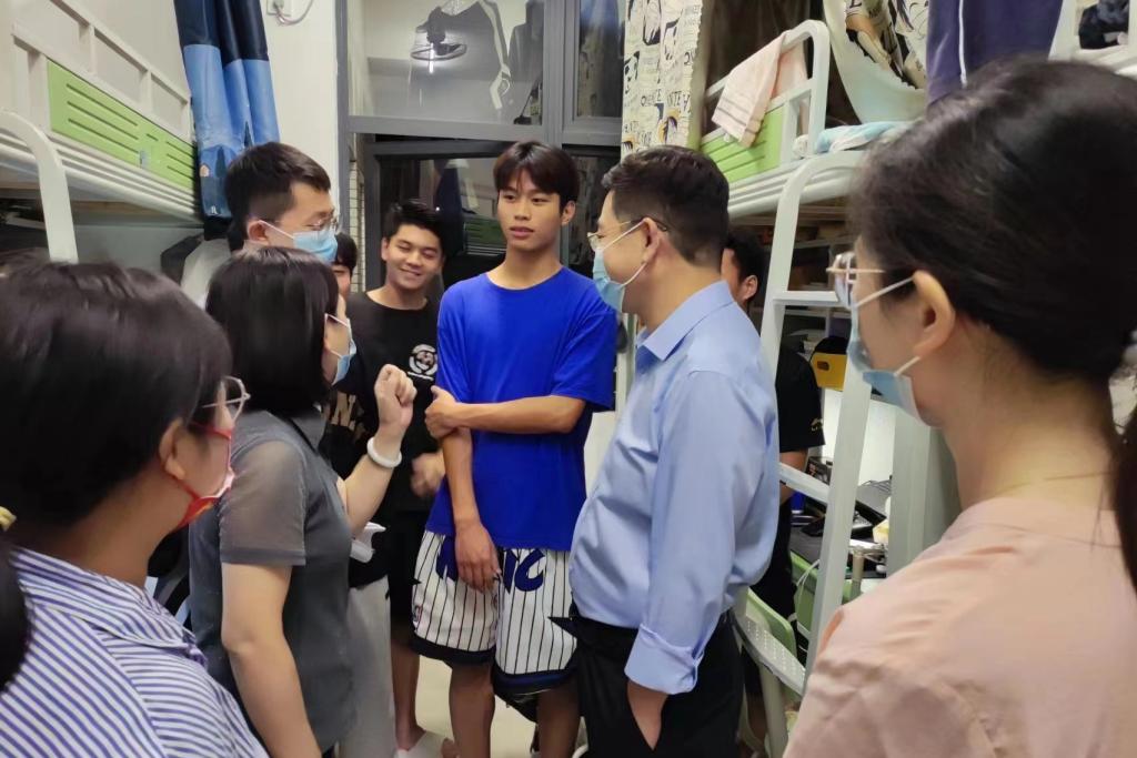 在慰问走访过程中,老师们详细询问学生封闭管理期间的学习和生活情况,针对学生热切关心的返乡问题进行了耐心解答,叮嘱大家注意防疫安全、寝室用电安全,强化疫情防控安全意识。老师们对因考研或家乡疫情暂时无法返乡的学生予以深切的关心关怀,对需要留校备考研究生的学生则进行了鼓励,让大家安心学习,争取考研成功;对即将离校返乡的同学叮嘱他们返乡不是放假,回家后要坚持线上学习、认真复习,准备迎接期末考试,返家后务必报平安。学院领导老师们还叮嘱同学们遇到困难时要及时向学院领导和辅导员寻求帮助,共同营造安全有序的学习和生活环境。