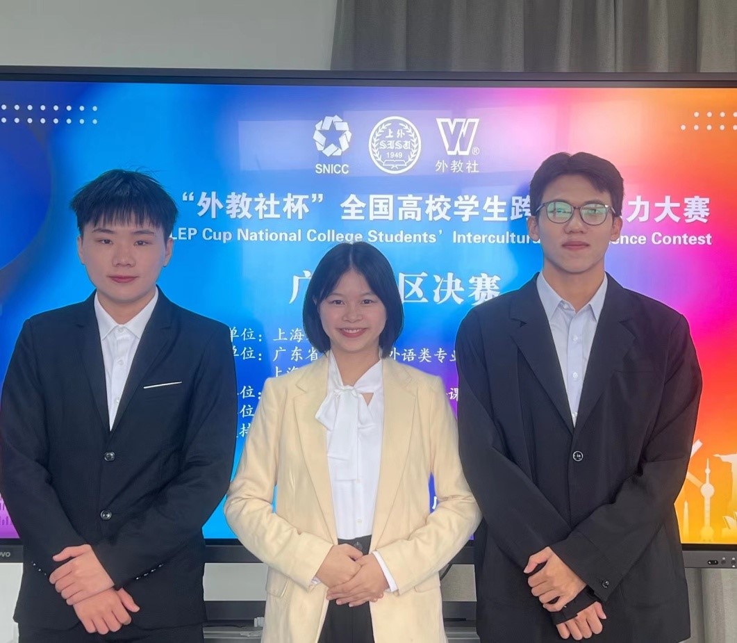 12月4日,由广东省本科高校外语类专业教学指导委员会、上海外语教育出版社主办,广东工业大学承办的第五届“外教社杯”全国高校学生跨文化能力大赛广东赛区决赛落下帷幕,买球官网学生林斌(外国语学院)、黎幸桐(文学与传媒学院)、温鑫桦(文学与传媒学院)(指导老师:李逸涵)获二等奖的好成绩。