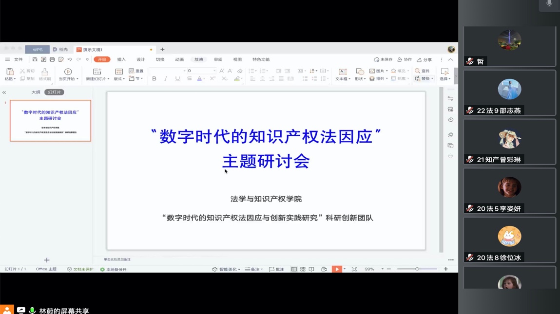 为进一步提高法学与知识产权学院师生的学术研究水平、凝练学术团队方向,12月1日法学与知识产权学院组织开展了“数字时代的知识产权法因应”主题线上研讨会。学院领导班子、教师及学生150多人参与,总时长超过3小时。