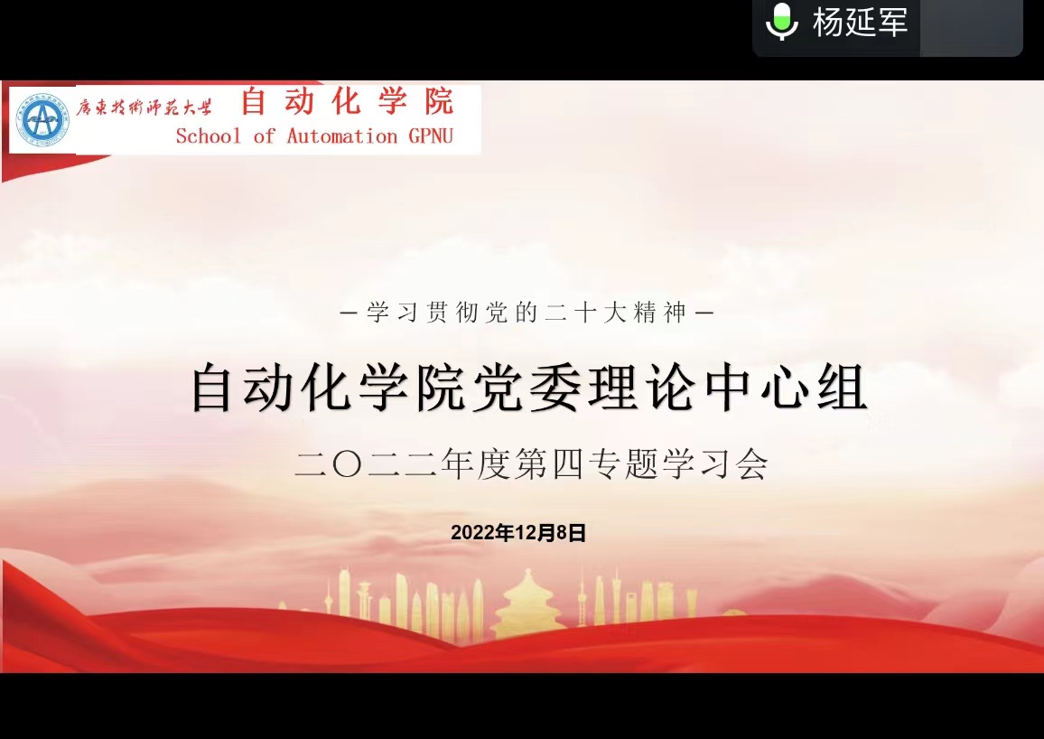 为深入学习贯彻党的二十大精神,深刻领悟党的二十大提出的新思想新论断、作出的新部署新要求,把全院师生的思想统一到党的二十大精神上来,进一步掀起学习宣传贯彻党的二十大精神的新高潮,12月8日自动化学院党委理论学习中心组召开党的二十大精神专题学习会,学院党委全体成员和党支部书记参加会议,学习会还特别邀请青年教师代表参加。