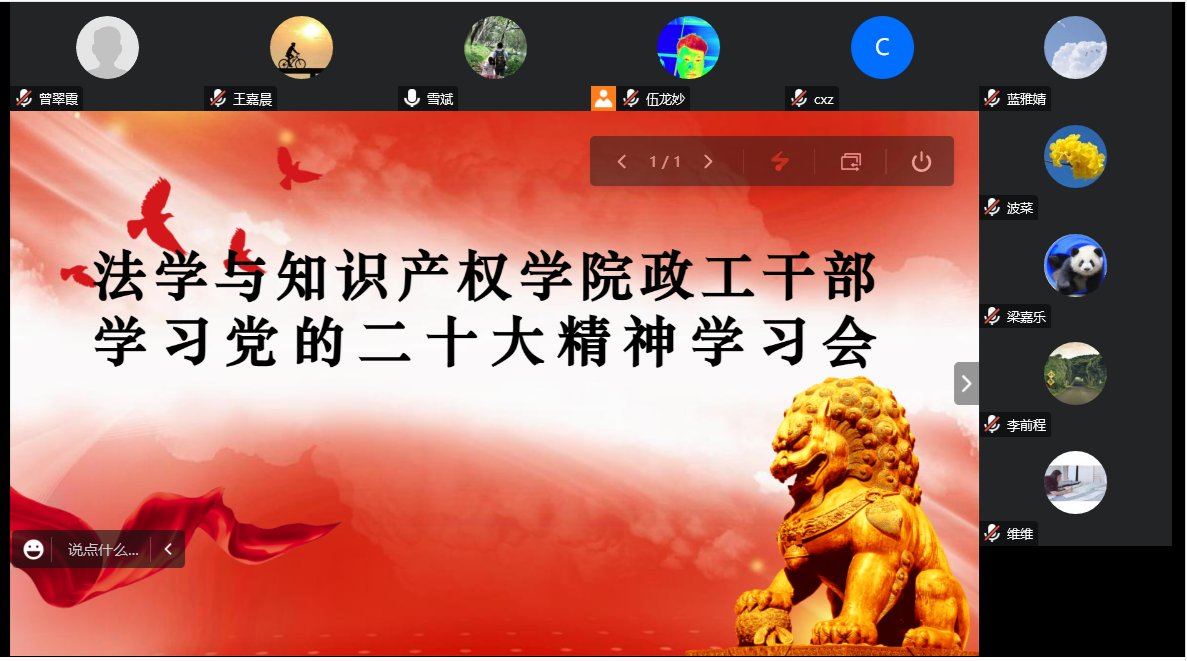 为深入学习宣传贯彻党的二十大精神,落实立德树人根本任务,把思想行动统一到党的二十大精神上来,把力量凝聚到党的二十大确定的各项任务上来,法学与知识产权学院于12月16日召开政工干部学习党的二十大精神专题会议。会议由学院党委副书记李雪斌主持。