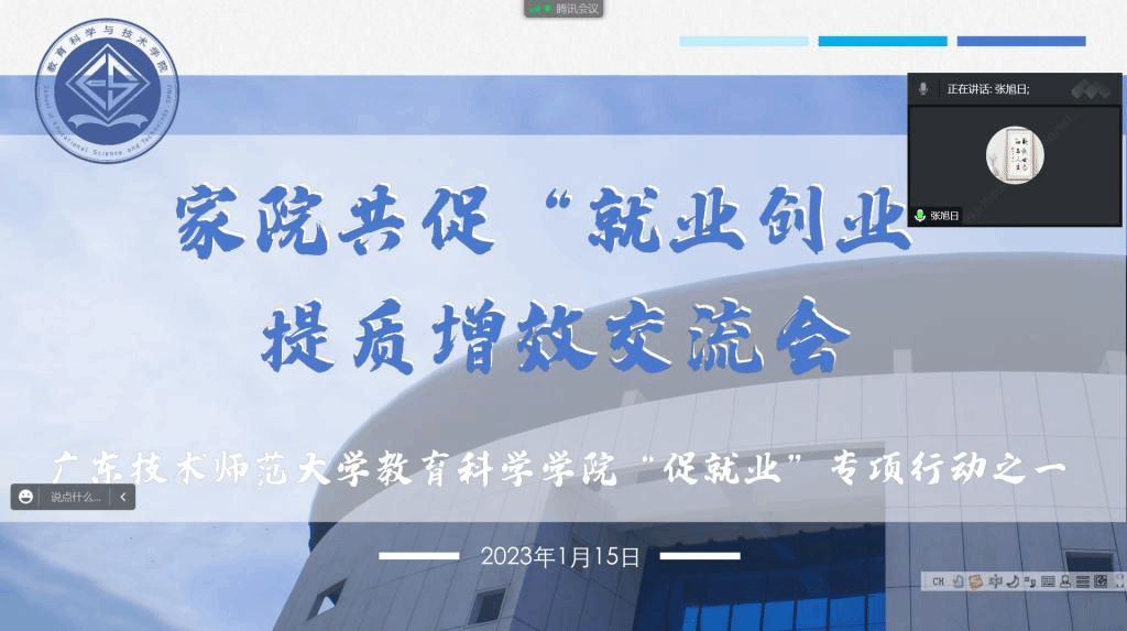 为深入学习习近平总书记关于做好高校毕业生就业工作的重要指示批示精神,优化就业创业指导服务,促进毕业生更加充分高质量就业创业,教育科学学院于1月15日通过腾讯会议和企业微信平台召开了家院共促“就业创业”提质增效交流会。学院党政领导班子成员、各系部(中心)主任、专业负责人、研究生导师、毕业班班主任和全体辅导员出席会议,2023届全体本硕毕业生和百余名学生家长代表共800余人同步参会。