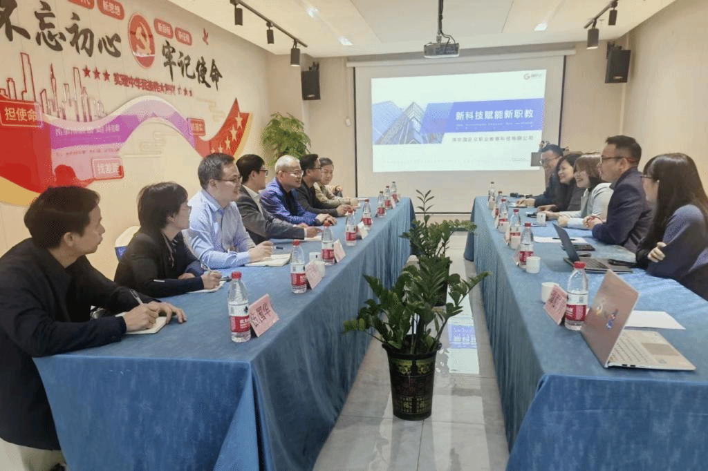 会上,大家认真听取了深圳国匠云职业教育科技有限公司的发展历程、产品研发、荣誉资质等情况,了解了深圳国匠云职业教育科技有限公司职业教育虚拟仿真实训基地建设、人工智能、素质教育等方面配套课程资源开发与建设、三大国赛的竞赛辅导(挑战杯、互联网+、创新创业大赛)、实训室建设等累累硕果。双方就职业教育虚拟仿真实训基地建设、人工智能课程建设、产学研合作基地、校企实习岗位建设等方面进行了深入的交流。