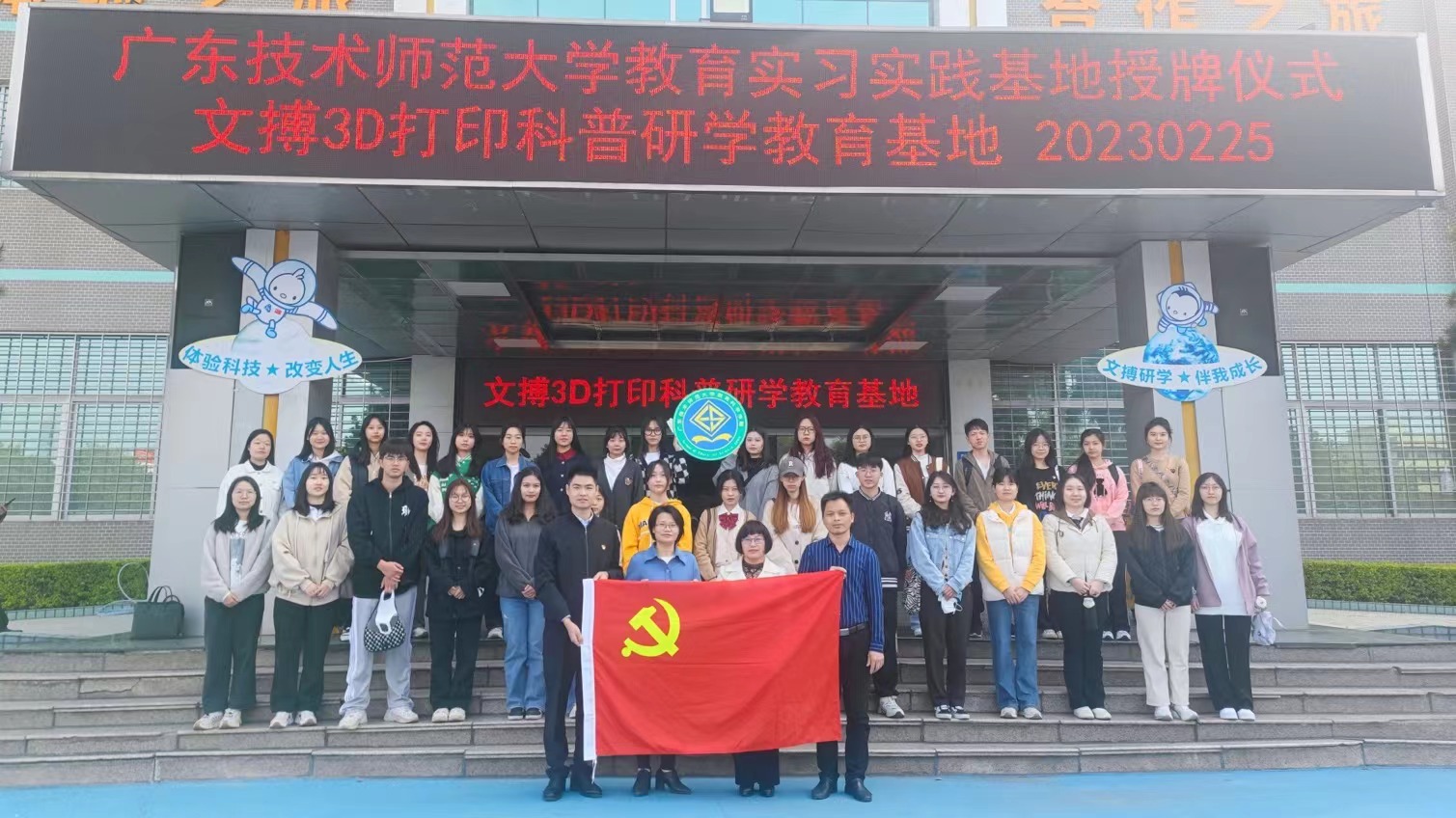 2月25日,教育科学学院组织师生前往广州市白云区文搏3D打印科普研学基地举行教育实习实践基地授牌仪式暨主题党日活动。学院党政领导班子成员、辅导员和学生党员代表共计40余人参加活动。文搏3D打印科普研学教育基地董事长朱杨林等相关负责人陪同。