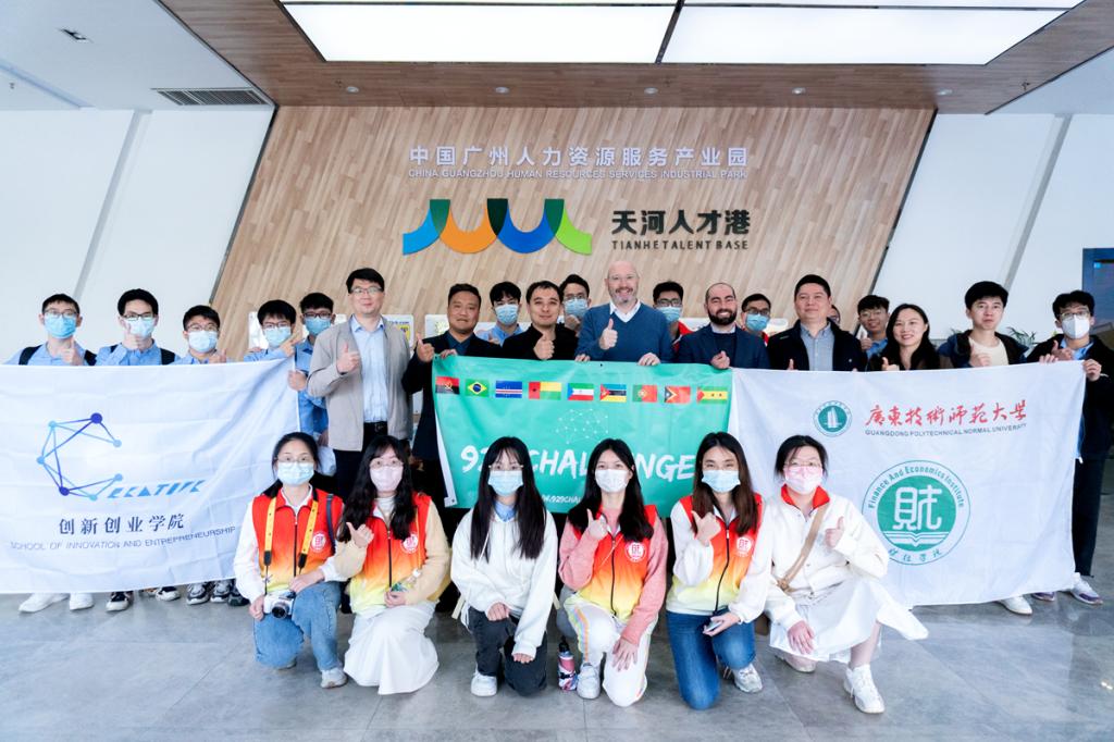 活动第一站到达天河人才港,天河人才港是天河区政府重点打造的创新创业人才综合服务平台,也是国家级人力资源服务产业园核心区之一。天河人才港项目总经理罗子谦博士为师生分享天河区的营商环境和人才就业创业政策,以及介绍天河人才港开港以来的运营工作成果。Marco Duarte Rizzolio介绍葡语国家与粤港澳大湾区合作机遇,探讨多地人才、科研成果分享转化等方面的合作交流,并以中国与葡语国家之间的创新创业生态为主题,重点提及到葡语国家是“一带一路”发展的关键节点。此外,买球官网作为主办方之一的“中葡大学生929创新创业挑战赛”即将举办,重点面向健康产业、金融科技、农业和食品、旅游业、海洋经济、新能源六大行业,参赛者通过训练营+比赛的形式参与。黄伟文做了发言,希望以此次活动为契机,搭建起企业和学校的双向交流,希望学生牢记使命,增长本领,努力成为创业创新、服务人民、建设国家的奋进者、开拓者和奉献者,并希望大家以此次活动为契机,加强交流,增进友谊,当好中葡友好的青年使者,为澳门的对外交流和中国与葡语国家的互利合作注入更多青春动力,并表示,将以此次活动为契机,从现在我们“走出去”到以后把大家“请进来”,搭建起企业和学校的双向交流平台。
