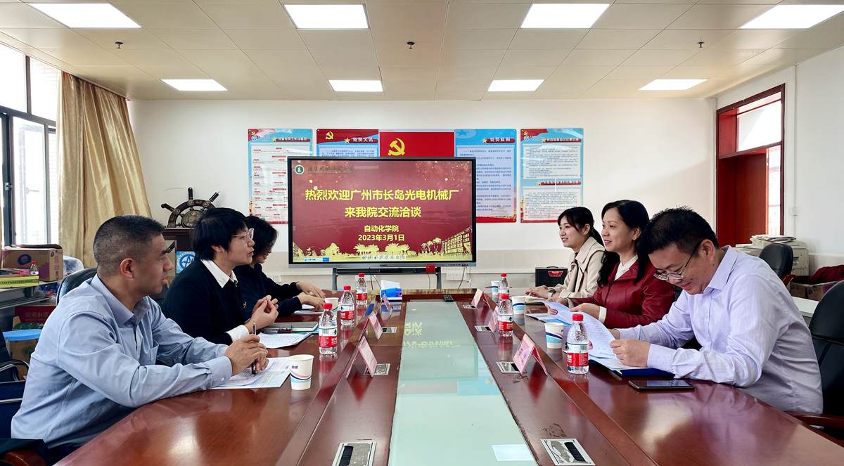 会上,岑健向长岛光电机械厂介绍了学院的概况、学科建设、专业培养情况,对该公司在疫情下展现出的实力与韧性表示肯定。蒋鹏重点就学院毕业生生源及就业情况等方面向公司进行了介绍。刘海银高度认同自动化学院人才培养质量,肯定了30余名历届校友在其岗位上发光发热,为企业发展做出的积极贡献。