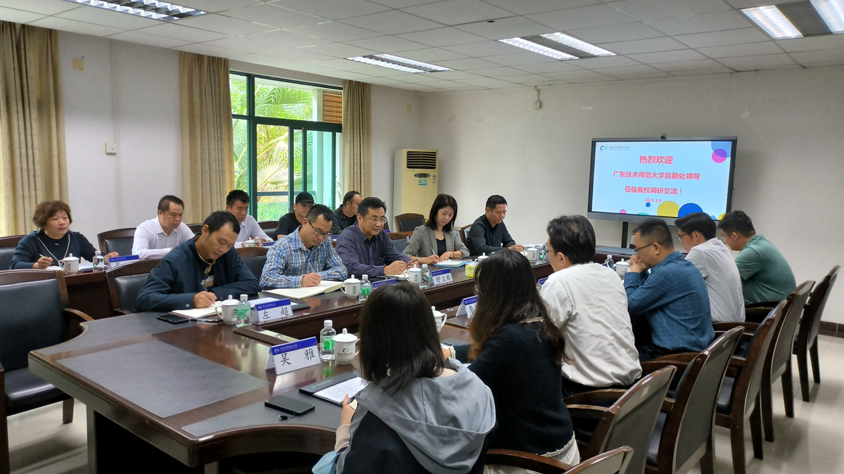 3月9日,买球官网后勤处党委书记赵珲、处长舒立新一行11人到广东轻工职业技术学院南海校区调研。广东轻工职业技术学院副校长梅建波主持召开座谈会,该校总务后勤部门有关负责同志及工作人员参加了本次会议。