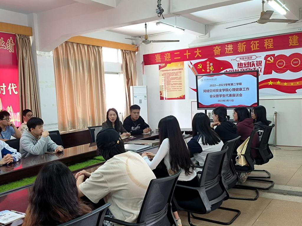 为深入落实立德树人根本任务,全面了解学生返校后心理健康状况,加强对心理重点关注群体的摸查与疏导,防范心理危机事件的发生,促进同学们思想道德素质和心理健康成长,3月13日上午,网络空间安全学院在西校区综合楼405会议室召开了网络空间安全学院心理健康工作会议暨学生代表座谈会。网络空间安全学院党委副书记肖茵茵、辅导员姜云鹏及各班学生代表参加了本次会议。