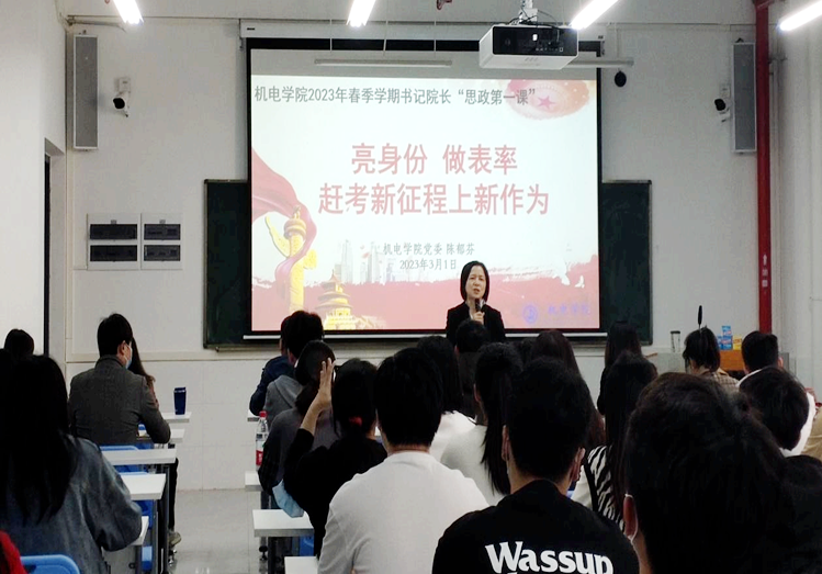 为深入学习贯彻习近平新时代中国特色社会主义思想和党的二十大精神,全面贯彻落实习近平总书记关于“大思政课”建设的重要指示,更好发挥思政课立德树人关键作用,近日,机电学院党委书记陈郁芬、院长杨勇为学生讲授2023年春季学期“思政第一课”。