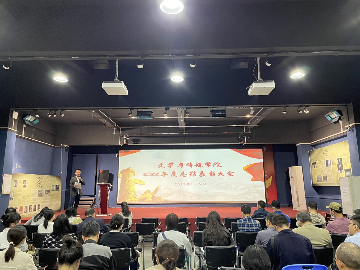 春日胜黄金,实干开新局。3月9日,文学与传媒学院在东校区郭小东文学馆召开2022年度总结表彰大会暨教职工大会,学院领导班子成员、全体教职工参加会议,会议由学院党委书记李双贵主持。