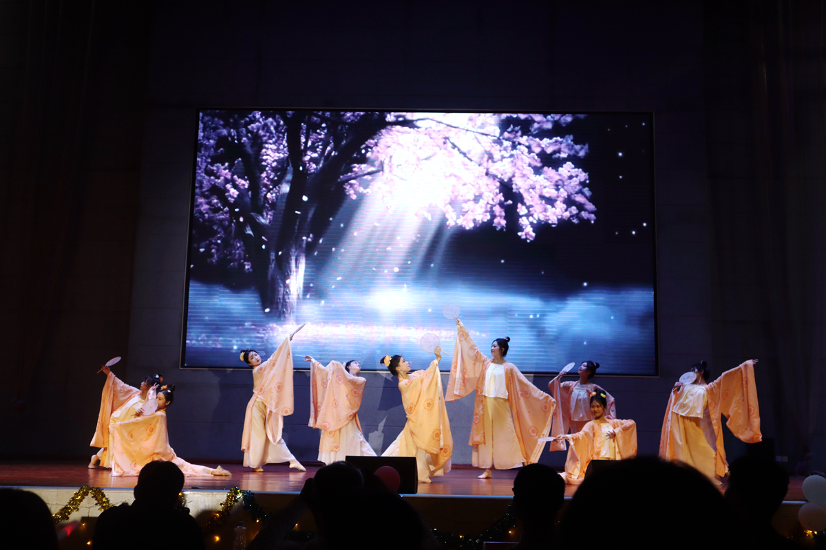 随后进行文艺表演,在璀璨的聚光灯下同学们以轻快舞步展现富有春春活力的姿态,民族舞蹈更具特色与魅力,师生同台以天籁般的歌声唱出心中的火光与热爱,瞬间将整个开幕式气氛推向高潮,赢得全场观众雀跃欢呼和热烈掌声,充分展现了学院青年学子阳光、自信、热爱生活的精神风貌。