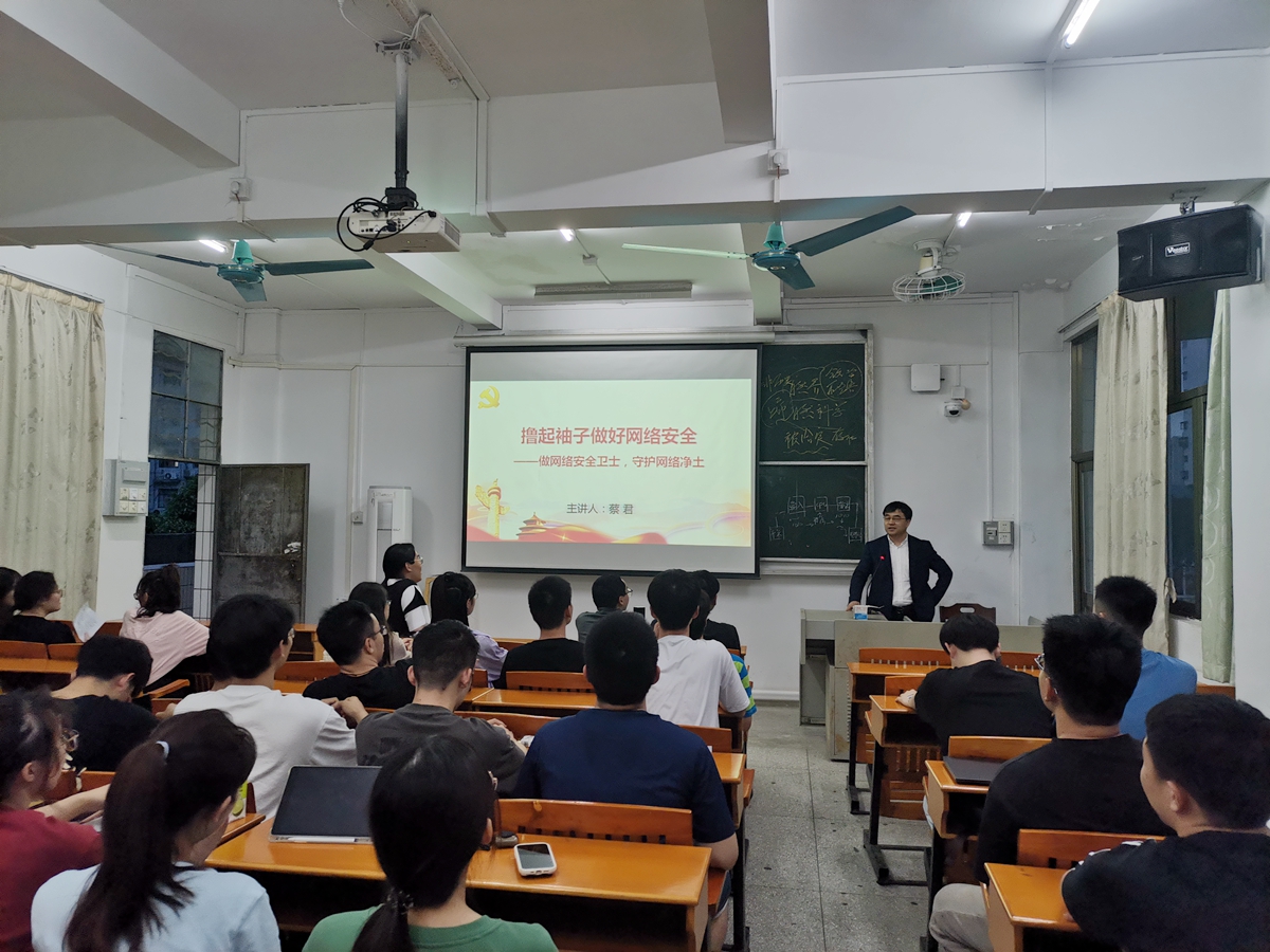 学院院长蔡君以《撸起袖子做好网络安全——做网络安全卫士,守护网络净土》为题,面向学院研究生讲授了一堂生动有趣的思政课。蔡君首先带领大家学习了习近平总书记在二十大报告中的重要论述,接着向同学们提出了期许:一是要坚定理想信念,从自身做起,规范网络行为,履行社会责任,增强法治意识,强化安全意识;二是鼓励研究生结合学院学科建设和导师的研究方向,刻苦钻研,苦练本领,积极参加各类学科竞赛,不负时代,不负韶华,做国家网络安全的守护者。